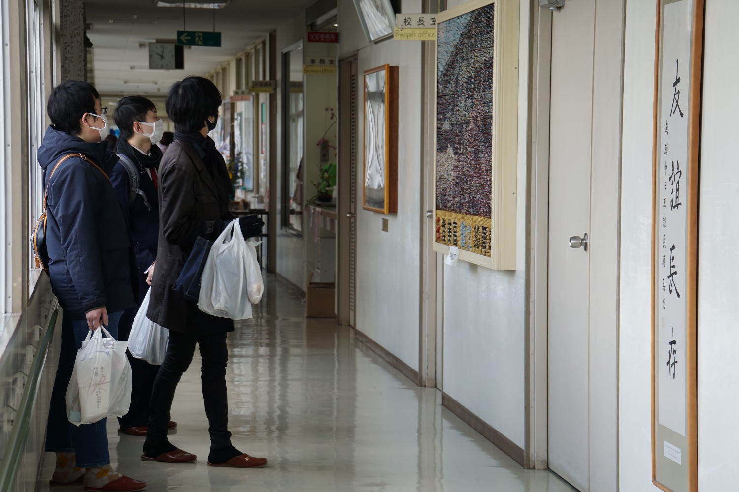 校舎を懐かしむ姿、久しぶりに母校に来ていただいた先生や教職員の方々と廊下で偶然出会い話されている姿、思い出のコートでサッカーやバスケットボールをされる姿が所々で見受けられました。