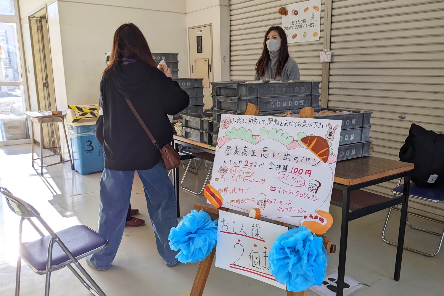 購買コーナーでは、5種類のパンが販売され、たくさんの方が列をなして購入されていました。