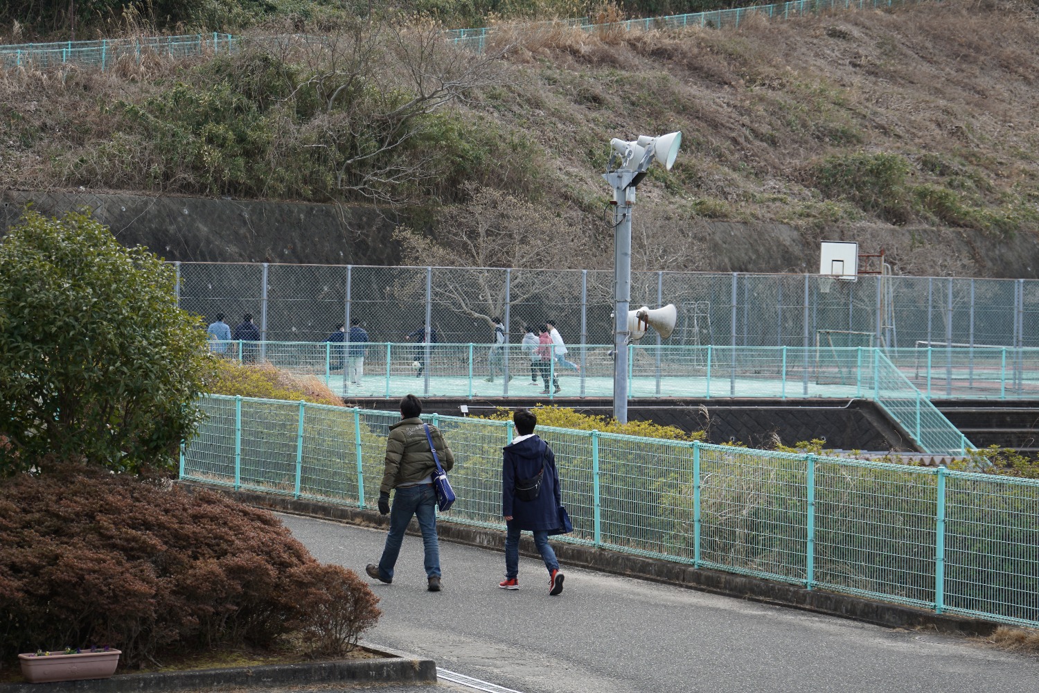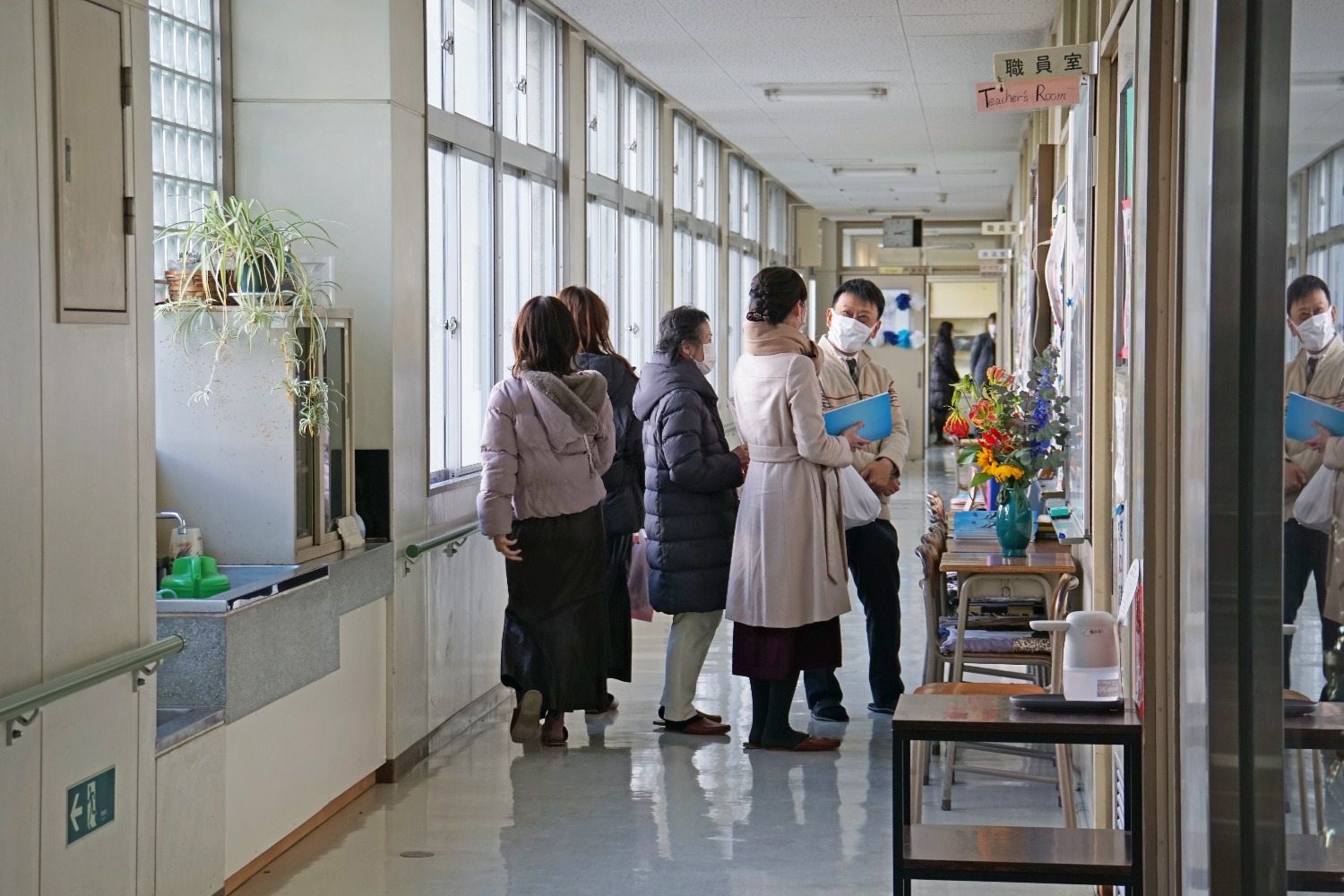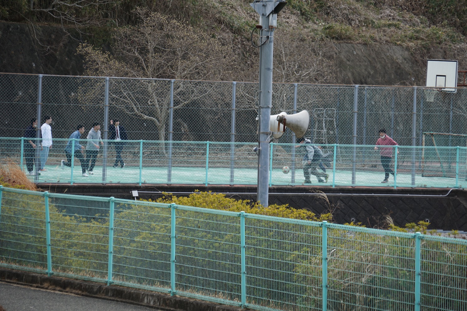 校舎を懐かしむ姿、久しぶりに母校に来ていただいた先生や教職員の方々と廊下で偶然出会い話されている姿、思い出のコートでサッカーやバスケットボールをされる姿が所々で見受けられました。
