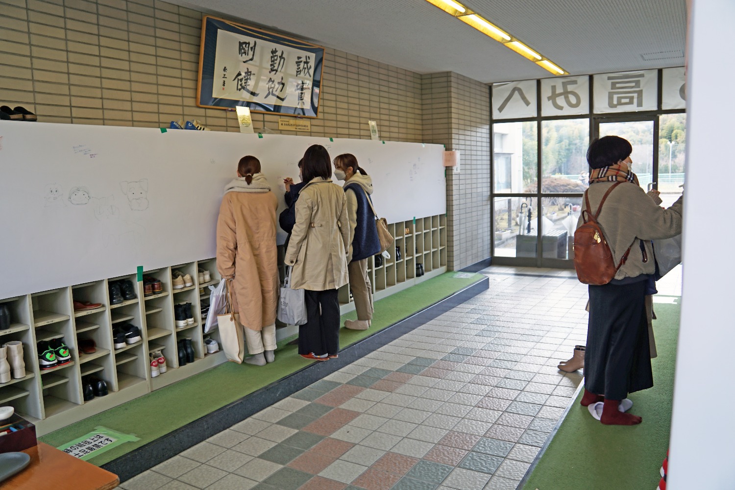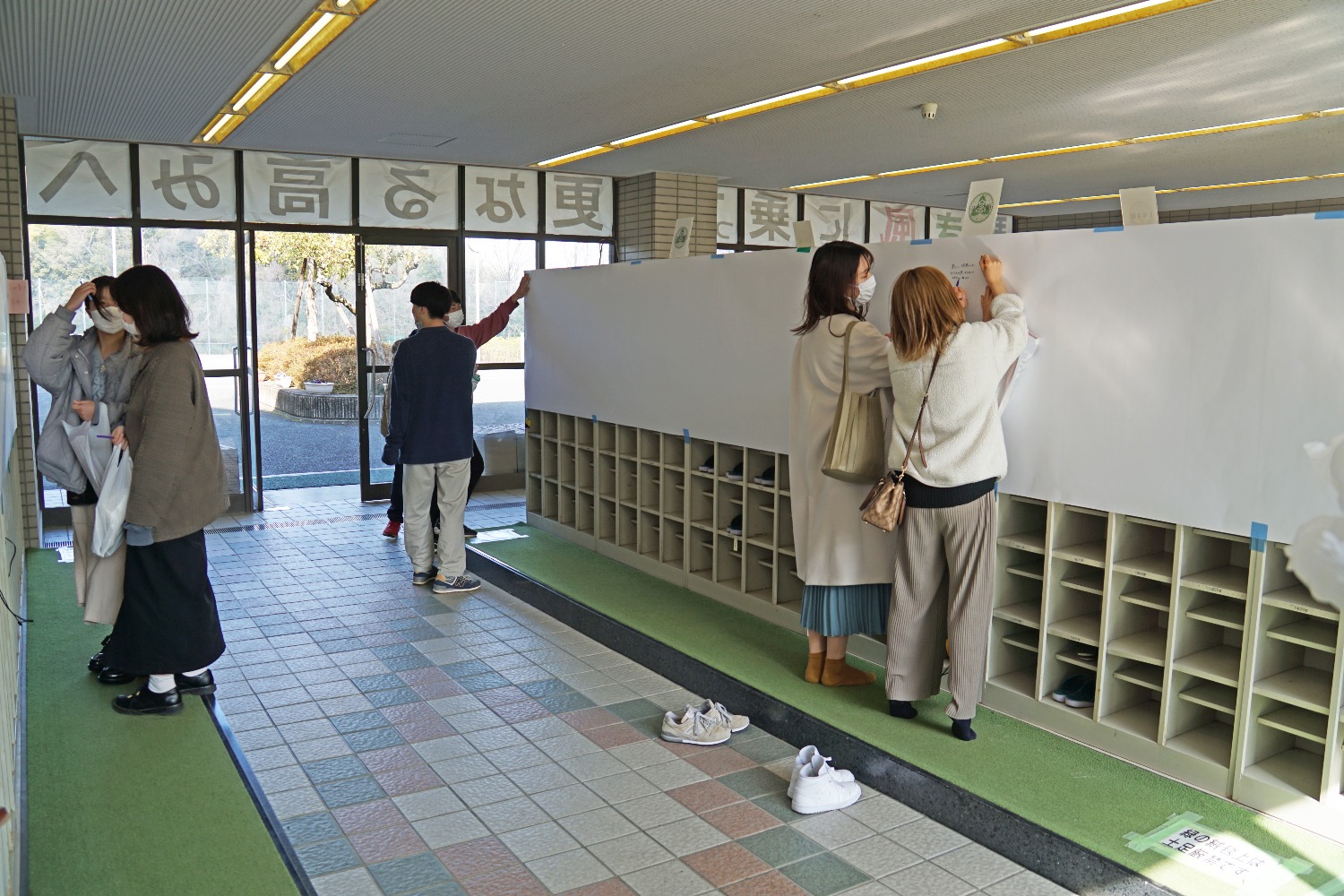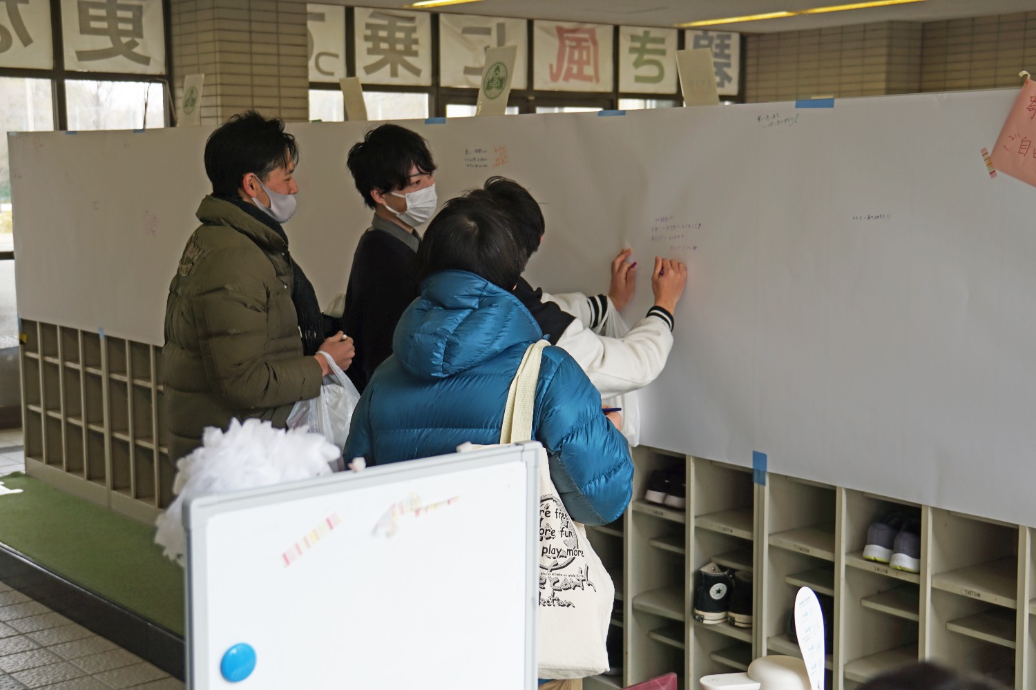 昇降口を始め、3箇所設置され、みなさん思い思いのメッセージを書かれていました。