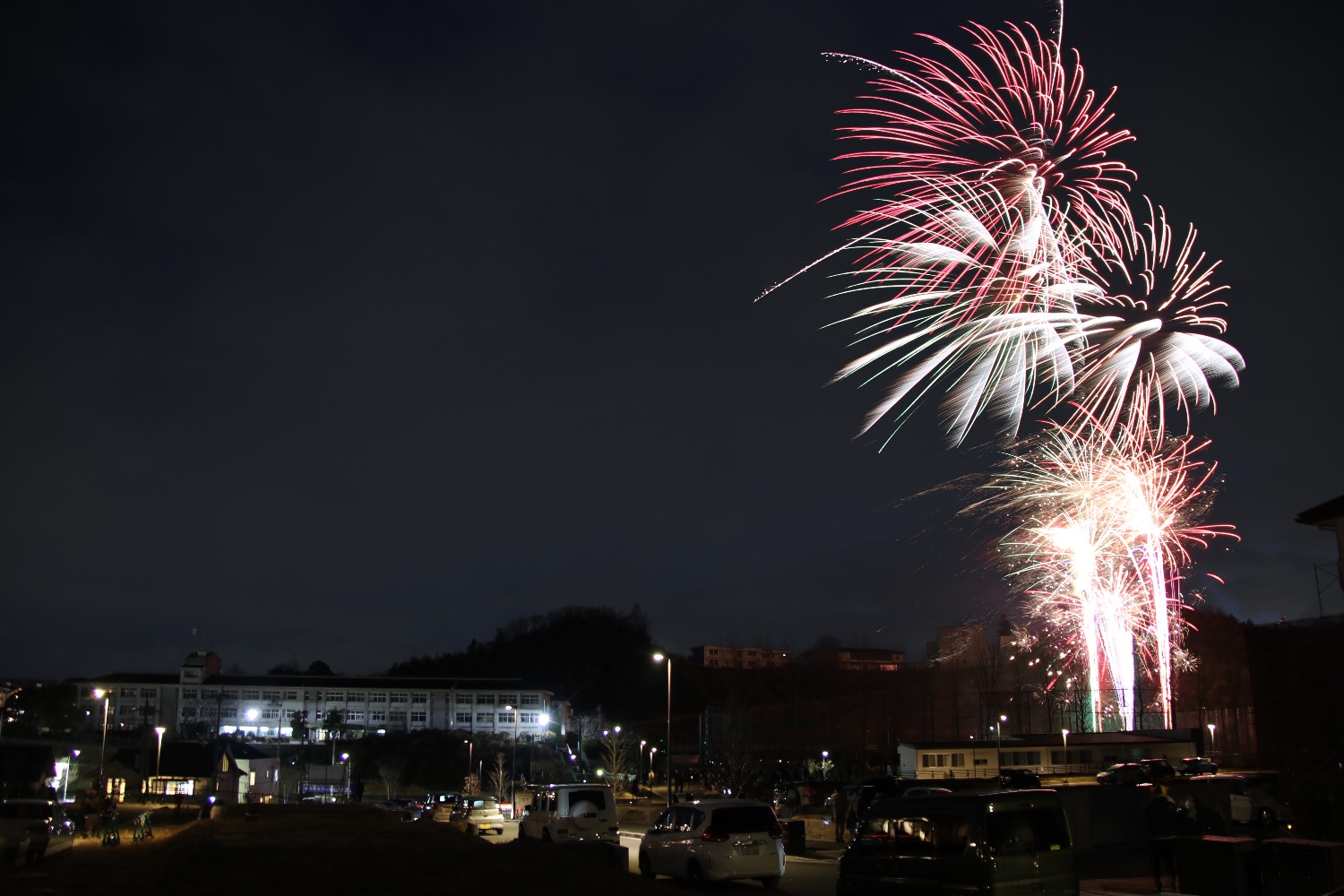 LiSAさんの「紅蓮華」、Mrs.GREEN APPLEさんの「StaRt」、ゆずさんの「友 〜旅立ちの時〜」の曲に合わせて、色鮮やかに、大小様々な花火が多数打ち上げられ、感動的なひとときでした。