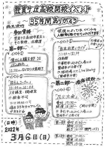 2022年3月6日(日)、登美ケ丘高校閉校イベントが、登美ケ丘高校および育友会主体のもとで、登美ケ丘高校卒業生とご家族および旧教職員を対象に開催されました。