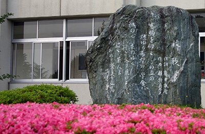 同窓会発足10周年記念として、校歌碑が正面玄関横に建てられました。